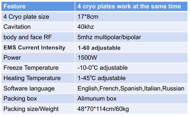 TM-602 4 EMS Cryolipolysis Plates Machine with Cavitation RF