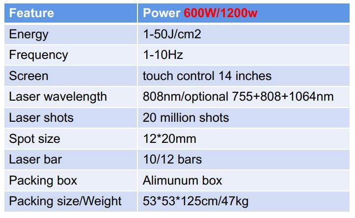 Option 1:Laser handle 755+808+1064nm power 600W spot size 12*20mm