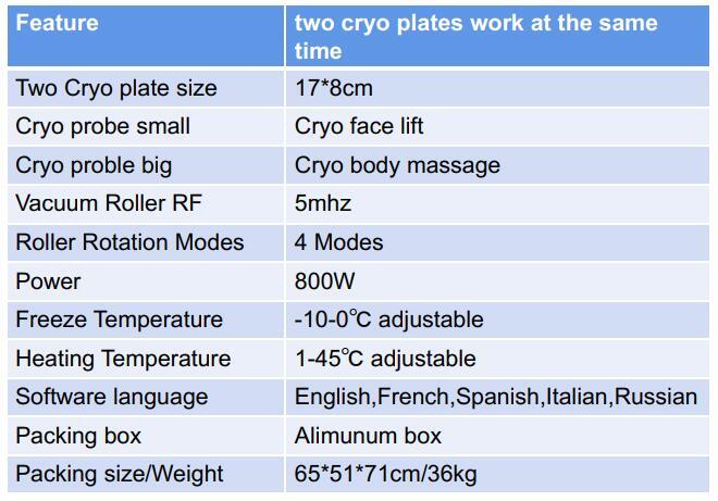 | Cooling | Minimum -10℃ fat freeze |